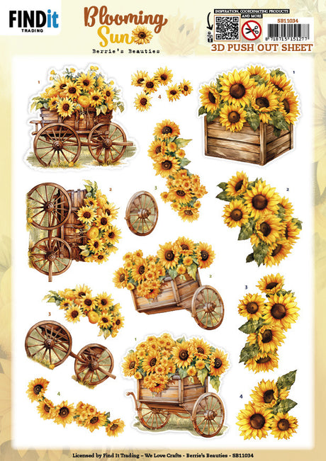 Berries Beauties, 3D Push Out Sheet, Blooming Sun - Sunflower Wagon SB11034