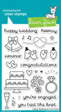Lawn Fawn, Happy Wedding Stamp is backordered and will ship as soon as it is back in stock.