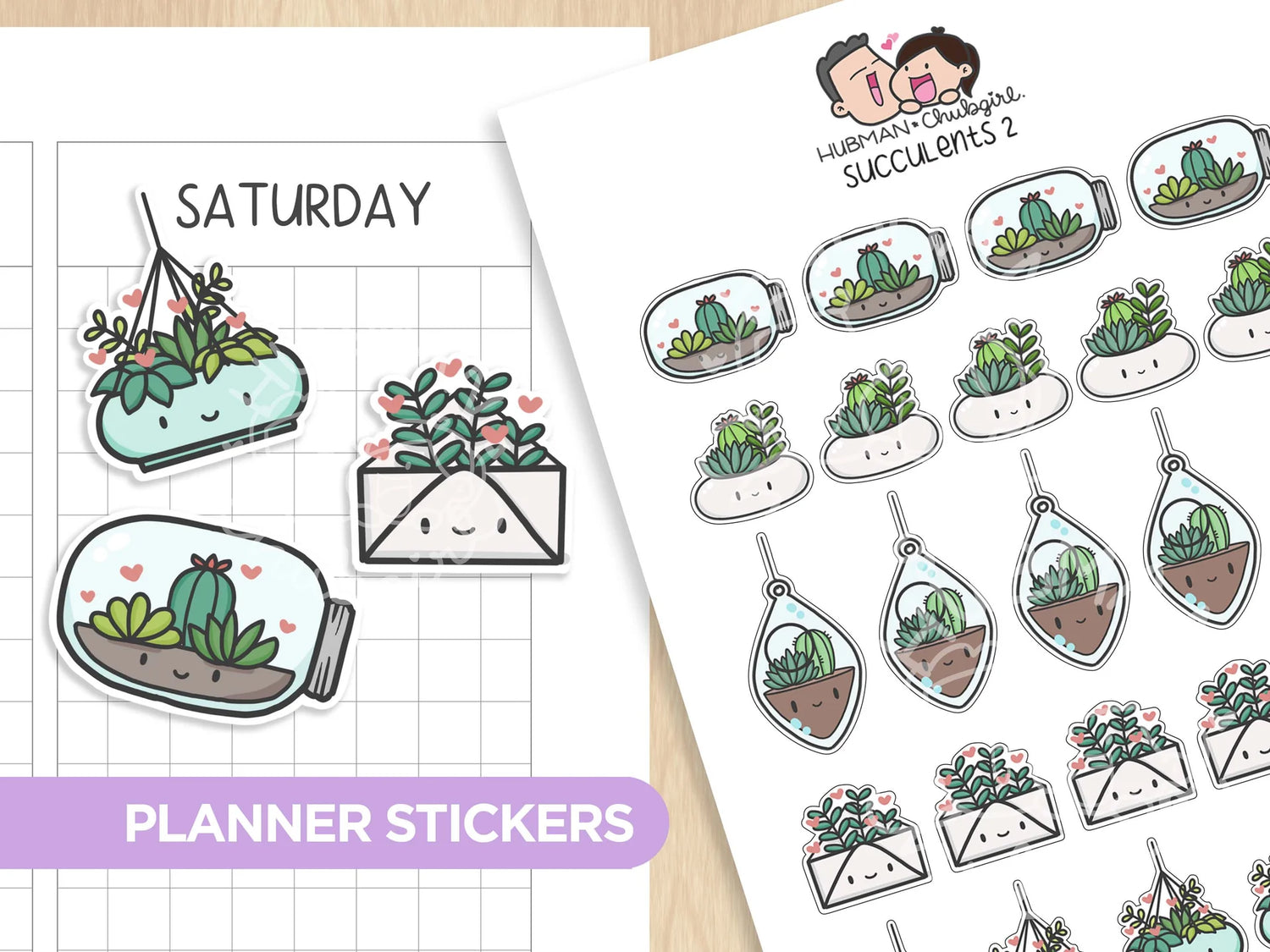 Hubman & Chubgirl Stationary, My Time Planner Stickers- Succulents 2 is backordered and will ship as soon as it is back in stock.