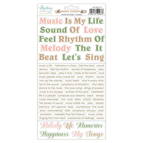 Mintay, 6X12 Paper Stickers, Music Garden - Words