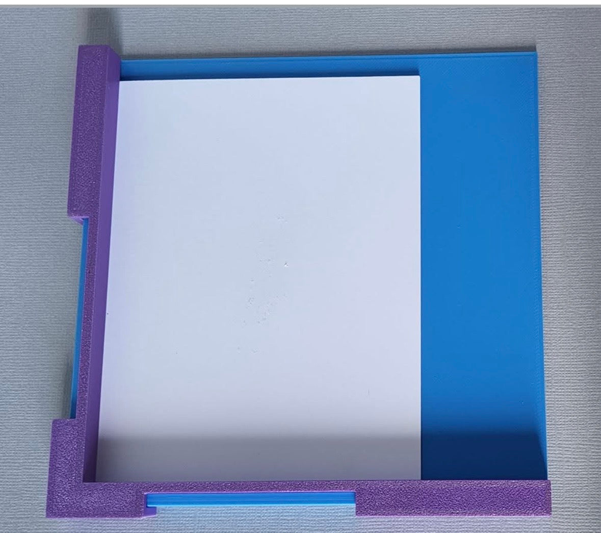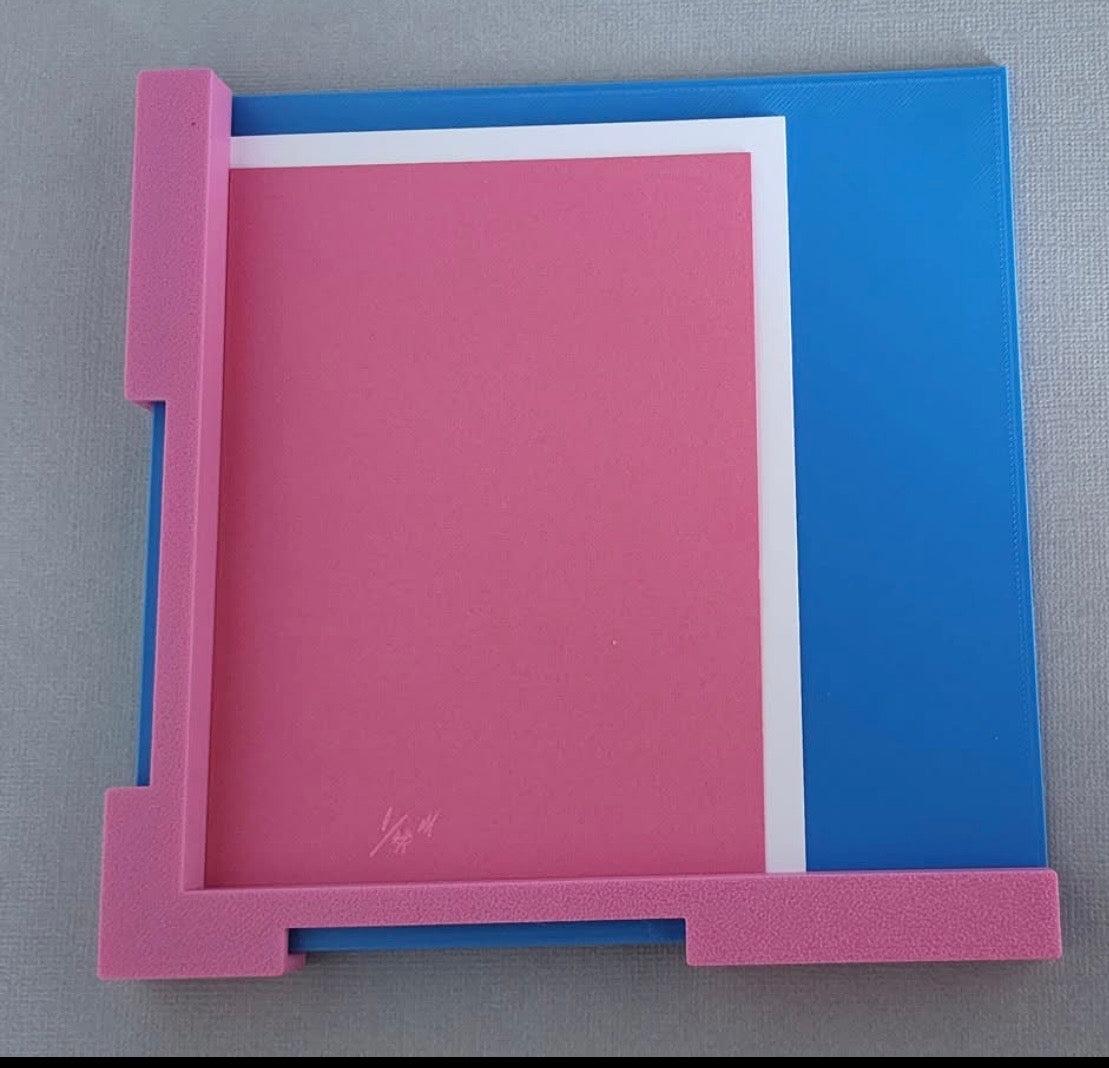This tool is created to assist in getting your papers to line up effectively. The blue base can be used left or right handed, and you place the paper layer, paper, card base ect into a corner, and then select the alignment guide you wish to use. They are in 1/8", 1/4', 3/8" and 1/2" measurements and you place the guide onto the edge of the blue base and then build your layers. There are 2 add-one to allow for smaller and larger mats, as well as a slide on ruler. These can be requested.